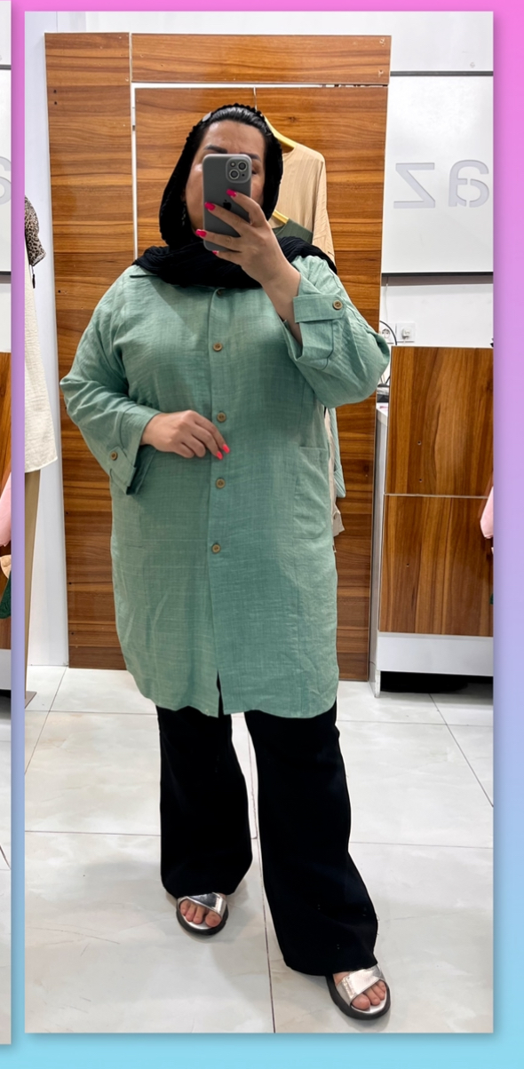 شومیزمانتویی جلوبسته سایزبزرگ جنس لینن شست شده.فری سایزازسایز46تاسایز54 فقط رنگ صورتی موجودناموجود
