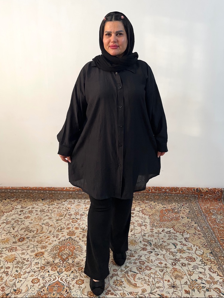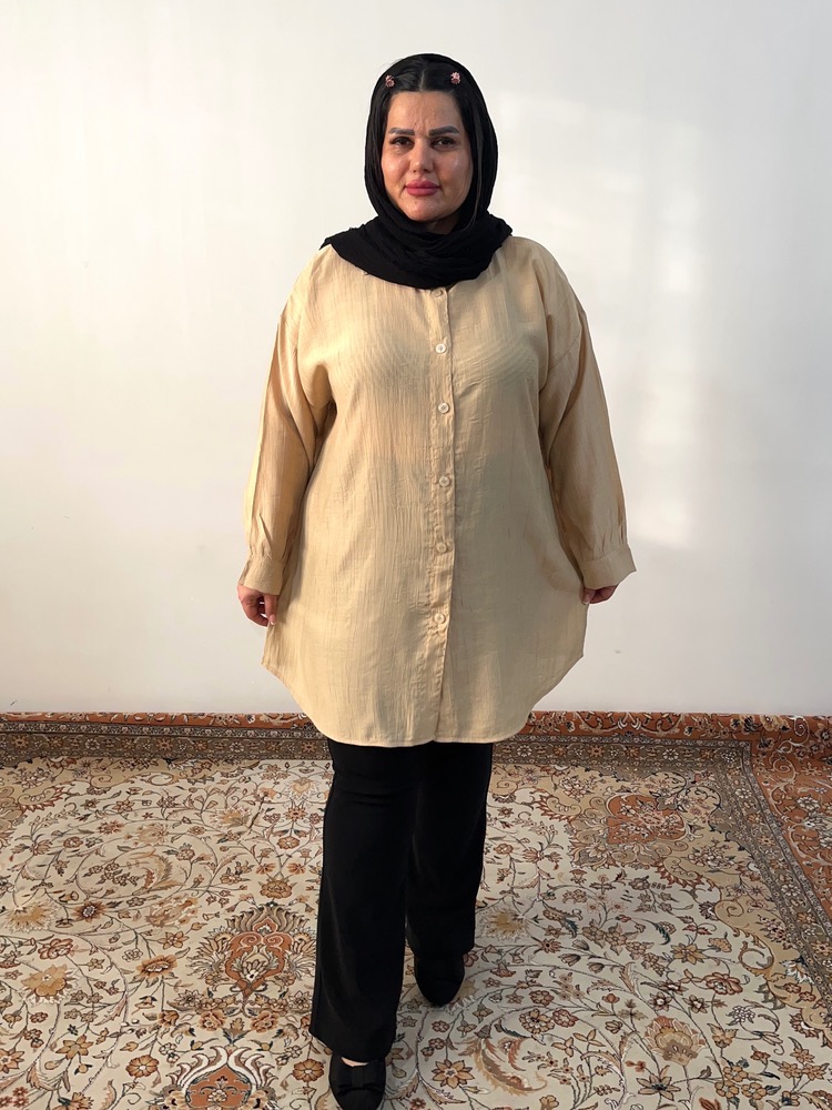 اندازه سایز ۴۸ تا ۵۴ : دور سینه ۱۳۸ / دور باسن ۱۴۵ / دور بازو ۵۳ / قد ۹۰