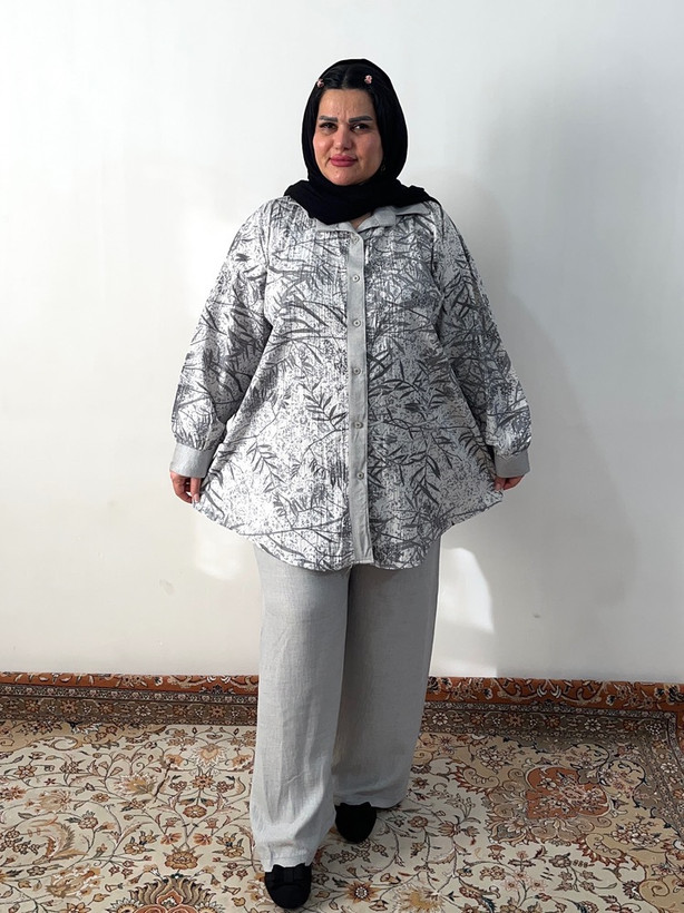 اندازه بلوز : دور سینه ۱۴۰ / دور باسن ۱۵۰ / بازو ۵۰ / قد بلوز ۸۵