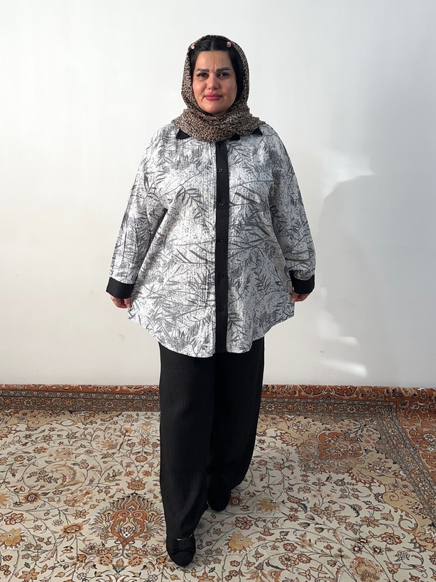 اندازه بلوز : دور سینه ۱۵۰ / دور باسن ۱۵۵ / دور بازو ۵۵ / قد ۸۵